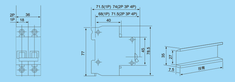 DZ47Z-63系列光伏小型直流斷路器適用于額定電流63以下,直流額定電壓125V、220V、440V的線路中,用于對直流輸配電系統的設施和電氣設備進行過載、短路保護及鏈路的不頻繁轉換之用。產品外形美觀、標準導軌安裝,具有通斷顯示。端子上下都有接線功能,接線時一定要注意“﹢ / ﹣”極性,用于440V電路的三極斷路器,結余正回路的為二極串聯連接。該斷路器還可以加裝輔助觸頭、報警觸頭和分勵脫扣器等附件,廣泛應用于通訊、電瓶、機車等行業。小型直流斷路器符合IEC60947-2-1997,GB14048.2-200.1標準