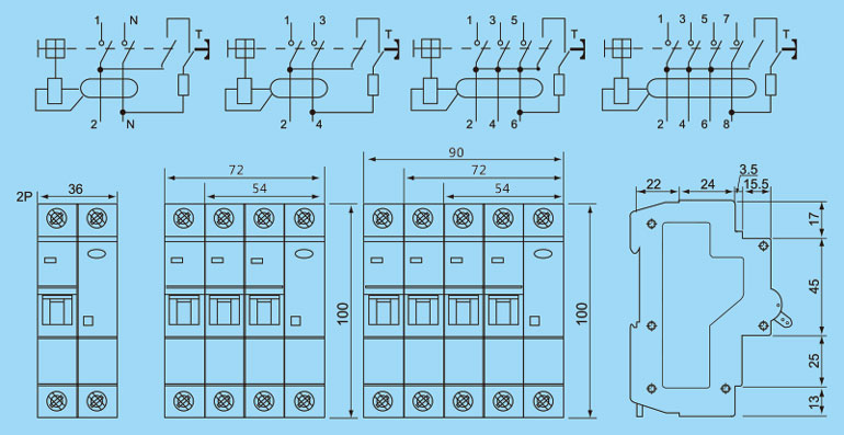 | 230 | 1+N | 32 | 6、10、16、20、25、32 | 30 ; 50 | 15 ; 25 | ≤0.1 | 280±5% | 6000 |