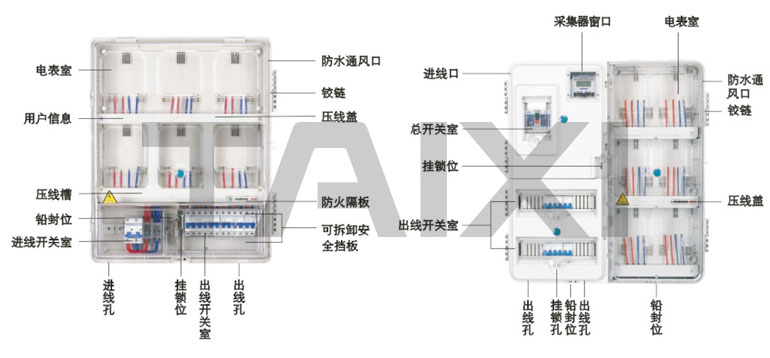此系列電表箱采用集成化設計理念,將一到十六戶各式電能表及整個計量回路集裝于一體化封閉箱內,不僅占用空間小,易于安裝和管理。而且能夠阻止竊電者觸及計量裝置,防止竊電行為。