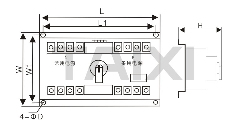 TXQ4雙電源自動(dòng)電源切換開關(guān)主要由電源轉(zhuǎn)換執(zhí)行斷路器組成,開關(guān)工作有三個(gè)狀態(tài)位置供用戶選擇:常用電源(N)合、雙分、備用電源(R)合,開關(guān)具有體積小、重量輕、工作穩(wěn)定,使用方便等。