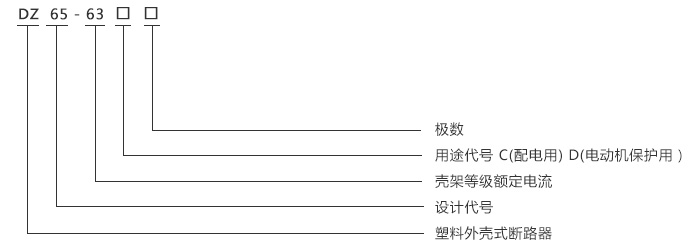 DZ65-63(C65斷路器)高分斷小型斷路器具有結構先進、性能可靠、分斷能力高、外形美觀小巧等特點,殼體和三部件采用耐沖擊、高阻燃材料構成。適用于交流50Hz或60Hz,額定工作電壓400V及以下,額定電流為63A以下的場所。主要用于辦公樓、注重和類似的建筑物的照明、配電線路及設備的過載、短路保護,也可在正常情況下,作為線路不頻繁的轉換之用,該產品符合IEC60898和GB10963等標準的要求。二、型號及其規格