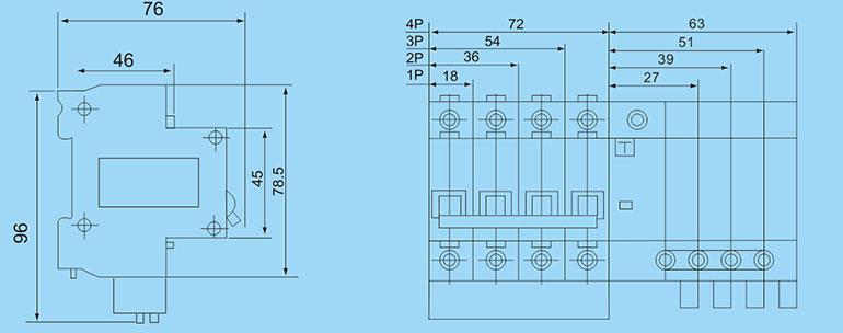 ◇ 額定電壓Un(V):單極兩線、兩極為230V;三極、三極四線、四極為400V;
