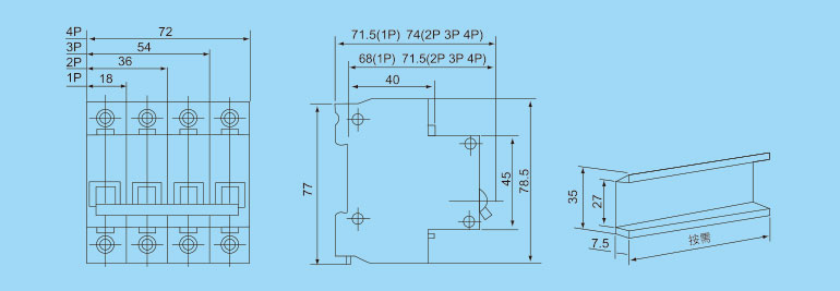 | DZ47-63G | 63A | 1P+N | 230 | 1-63 | 6000 | 270±5% | B、C |