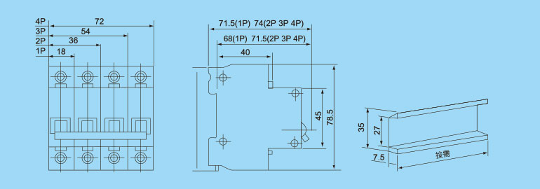 | 額定電流 | 6A、10A、16A、20A、25A、32A、40A、50A、63A |